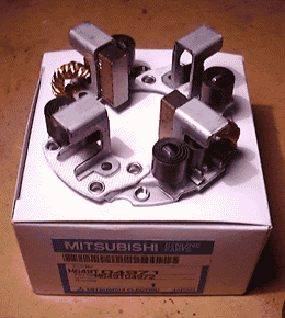 箱前面のラベルに御注目頂きたい。上部にはお馴染み「三菱純正品」と書かれている。しかし、下部に目をやると、(この写真では判りづらいが)「ミツビシ・エレクトリック」の表記が。モーター部品の扱いは自動車工業ではなく、電気だったのだ。 |